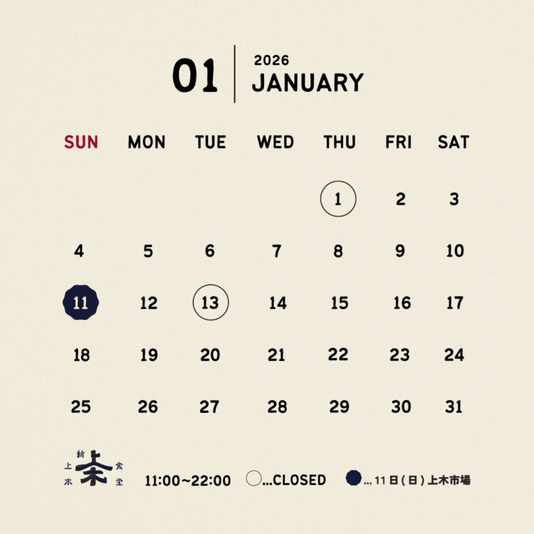 さて、1月度の新上木食堂ですが、